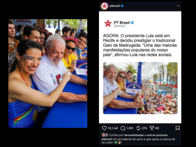 Foto de Raquel Lyra ao lado de Lula no Galo da Madrugada vira meme nas redes