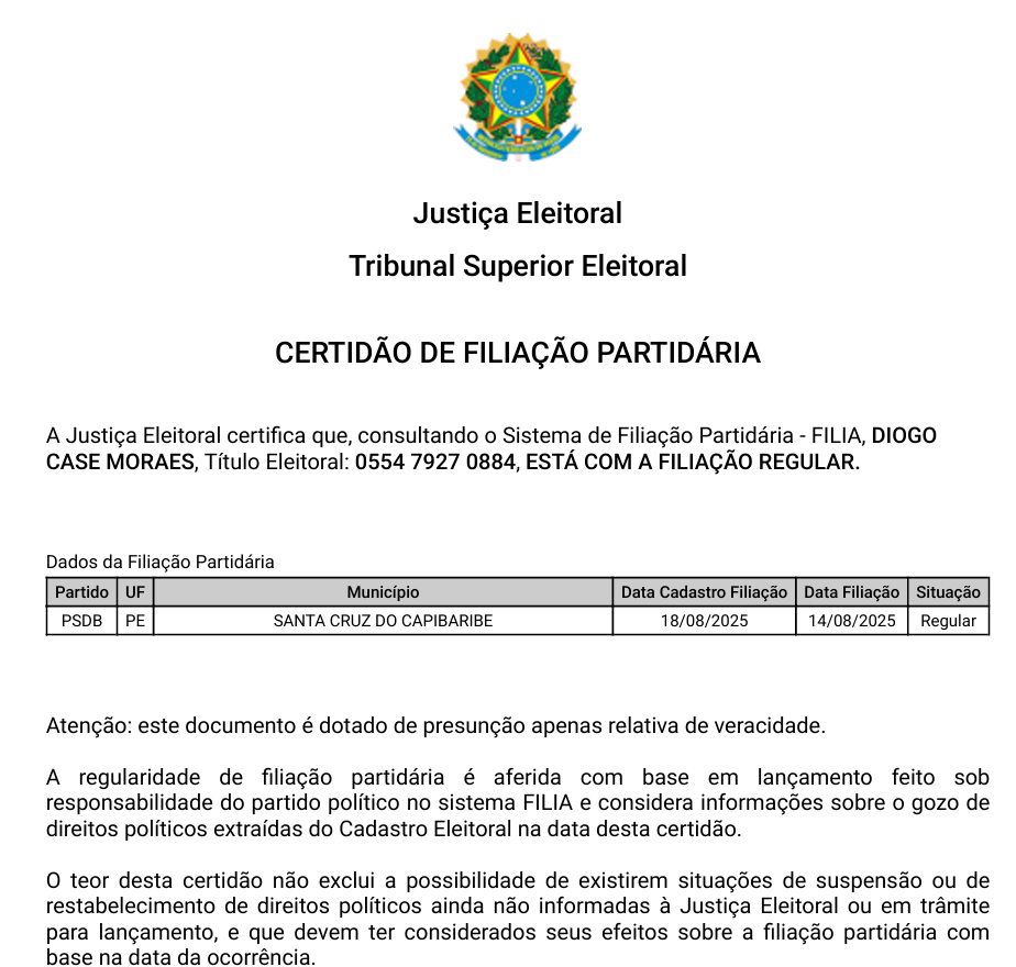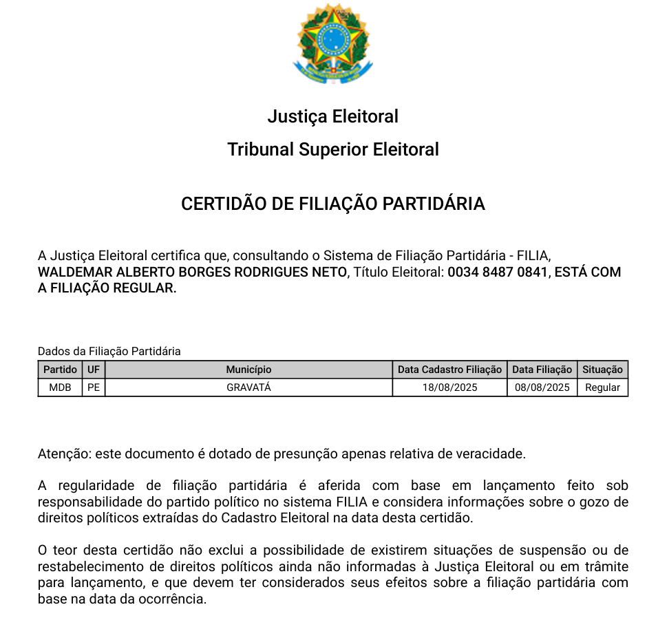 Diante das declarações, o Blog Plural consultou o TSE e confirmou que, apesar do que fora apontado pelos governistas, os ex-PSB já estão oficialmente filiados às novas legendas. Confira abaixo as certidões de filiação do TSE.