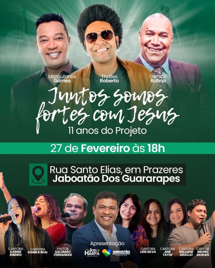 Reconhecido como uma iniciativa de evangelismo e ação social, o projeto tem se consolidado ao longo da última década como um movimento de fé, união e solidariedade em Pernambuco. A proposta vai além das celebrações religiosas, promovendo também ações sociais que impactam comunidades em situação de vulnerabilidade. A apresentação é do Deputado Joel da Harpa.